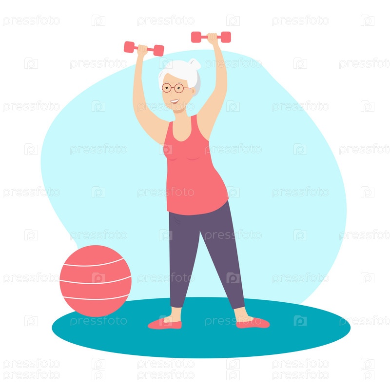 Пожилая женщина занимается спортом. Бабушка тренируется дома