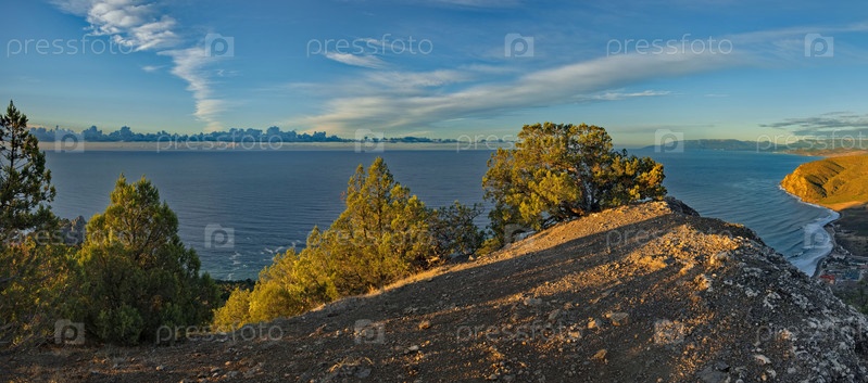 Россия, Новый Свет. Потрясающий вид на рассвете с мыса Капчик на окружающую бухту Крымского полуострова