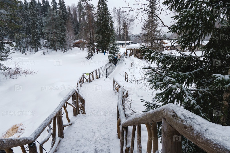 Зима в парке. Карелия Рускеальский заповедник зимой. В лесу идет снег