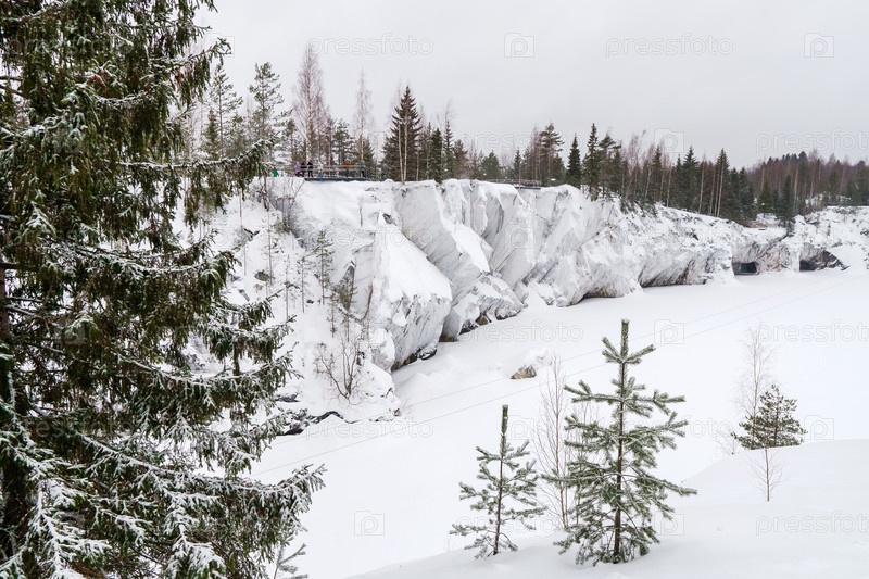 Зима в парке. Карелия Рускеальский заповедник зимой. В лесу идет снег