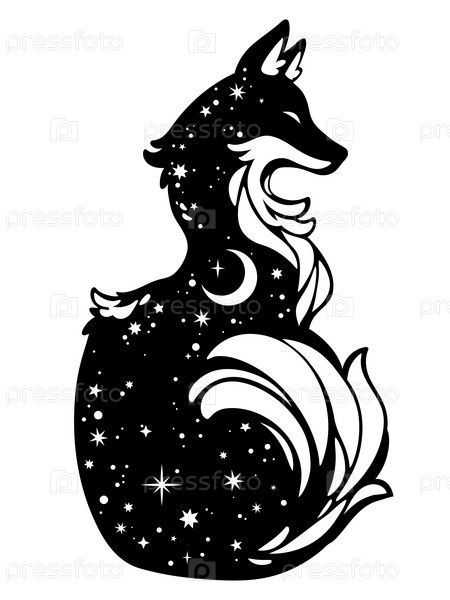 Черный силуэт животного с космическим узором