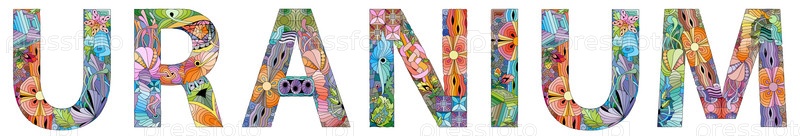 Слово УРАН. Это химический элемент. Цветное векторное слово, изолированное на белом фоне