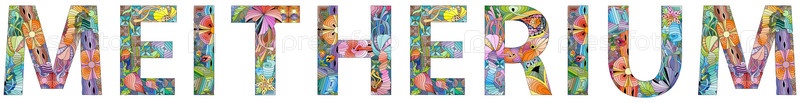 Слово MEITHERIUM.Это химический элемент.Цветное векторное слово, изолированное на белом фоне