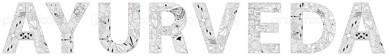 Иллюстрация слов АЮРВЕДА для окраски, дизайна футболок, татуировок и других украшений