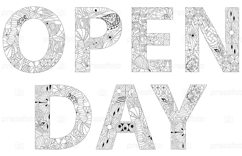 Художественный дизайн, нарисованный вручную. Нарисованная вручную иллюстрация ДЕНЬ ОТКРЫТЫХ ДВЕРЕЙ для раскрашивания, для футболок и других украшений