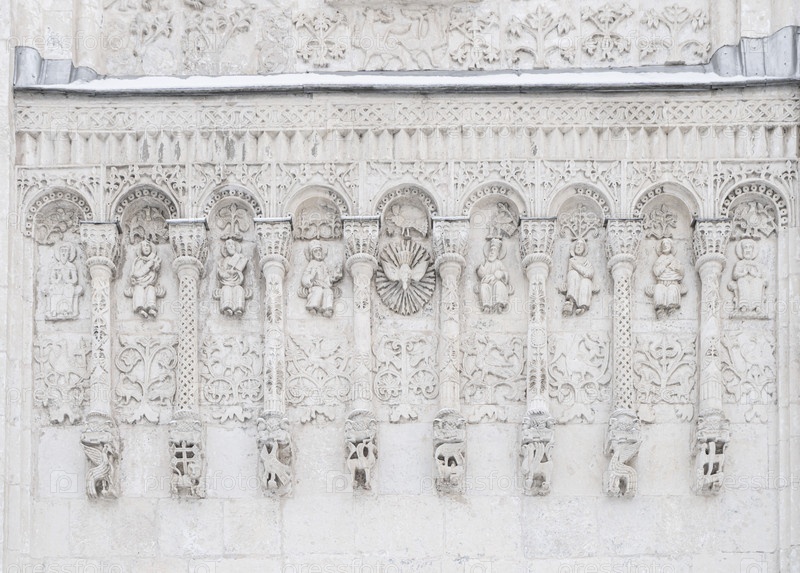 Белокаменная резьба Дмитриевского собора во Владимире. Фрагмент резного фасада