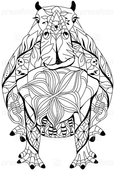 Zentangle стилизованная капибара для окраски.Ручно нарисованная декоративная векторная иллюстрация