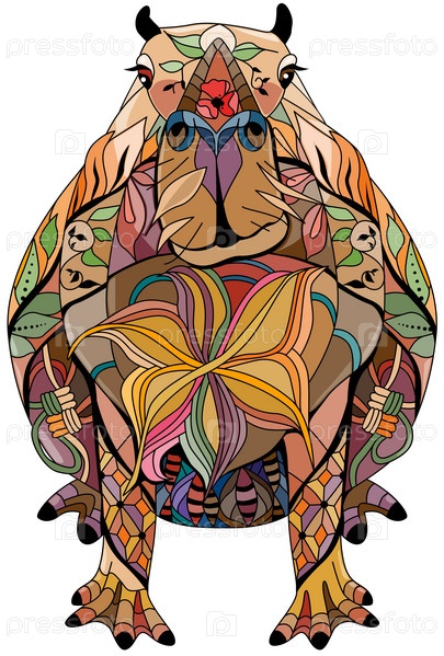 Капибара в стиле зентангл. Декоративная векторная иллюстрация, нарисованная вручную
