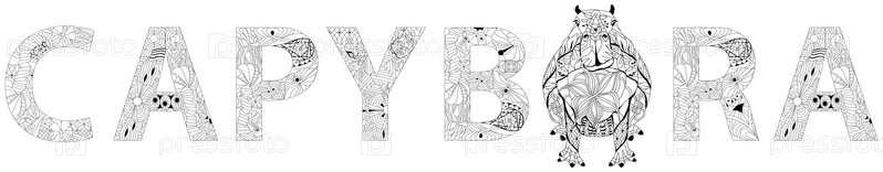 Слово Capybara в технике зентангл, стилизованной под краску, дизайн футболок, татуировок и других украшений