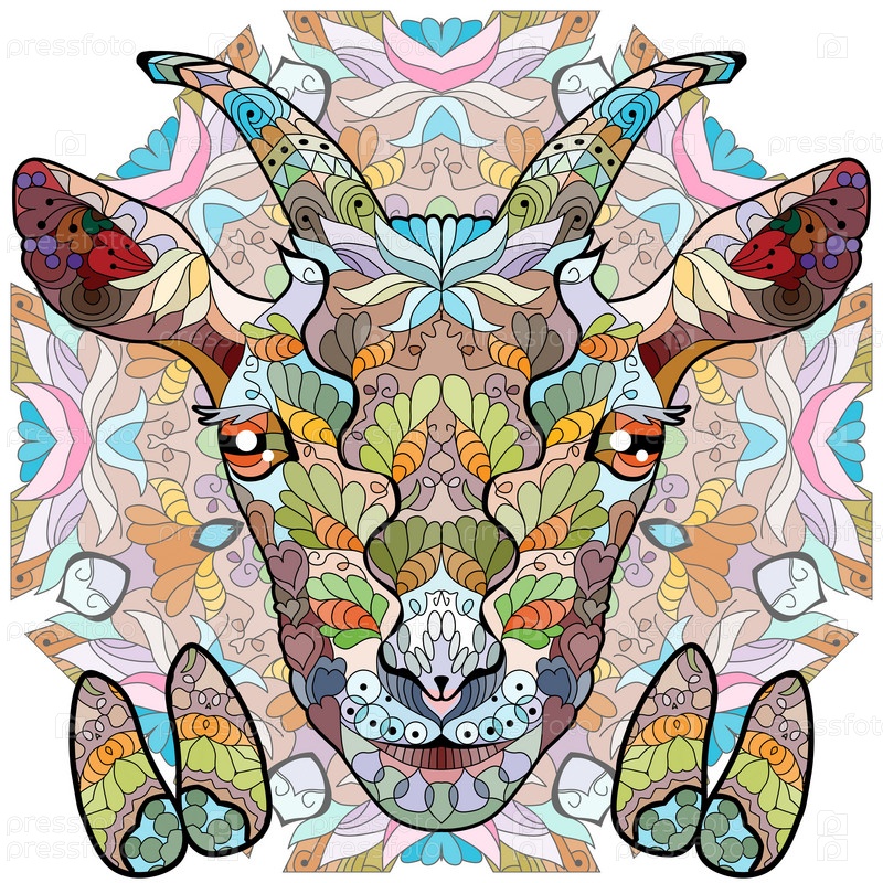Копыта головы козла в стиле зентангл на мандале. Нарисованная вручную декоративная векторная иллюстрация