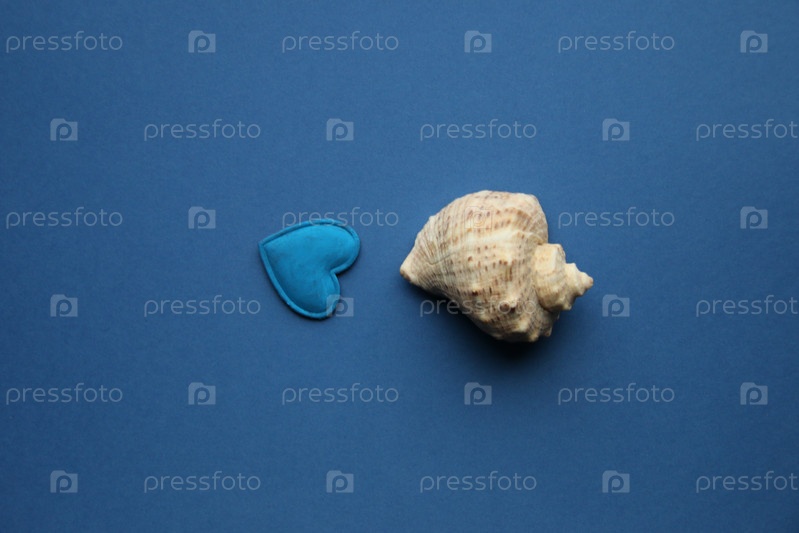 Морская ракушка на синем фоне
