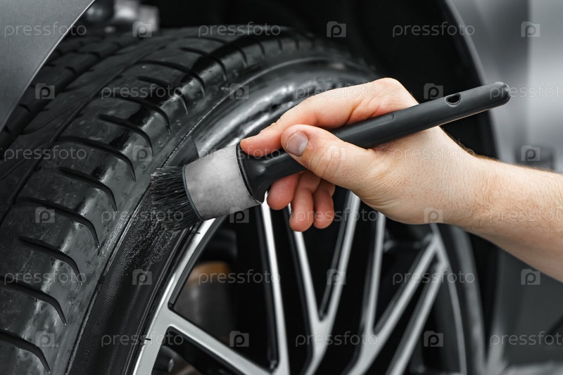 Нанесение химического защитного состава на автомобильную шину с помощью кисти. Сохранение цвета и защита автомобильной шины. Детейлинг