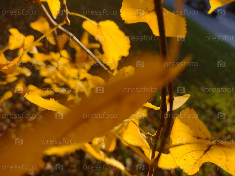 Красивые желтые листья растут на ветвях деревьев в солнечный осенний день