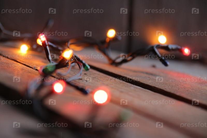 Рождественская гирлянда крупным планом. Новогодние украшения для дома