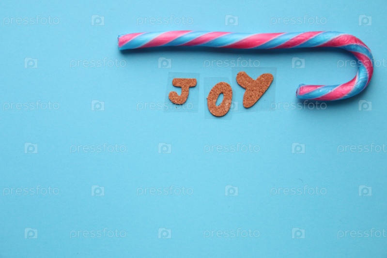 Веселая рождественская открытка. Надпись — радость и леденец