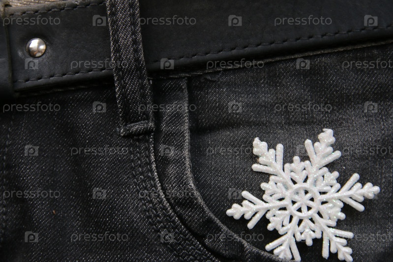 Зимний фон. Снежинка на фоне джинсов