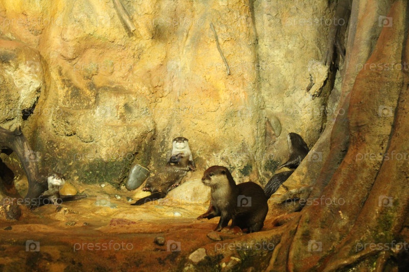 Lutra cinerea, Aonyx cinereus или Amblonyx cinereus моет и расчесывает свою шерсть