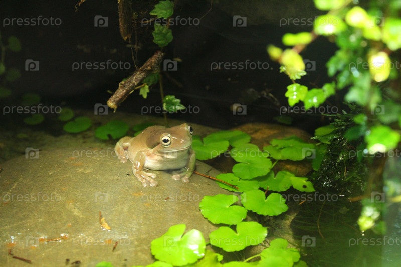Лягушка Litoria caerulea Pelodryadinae сидит в луже воды