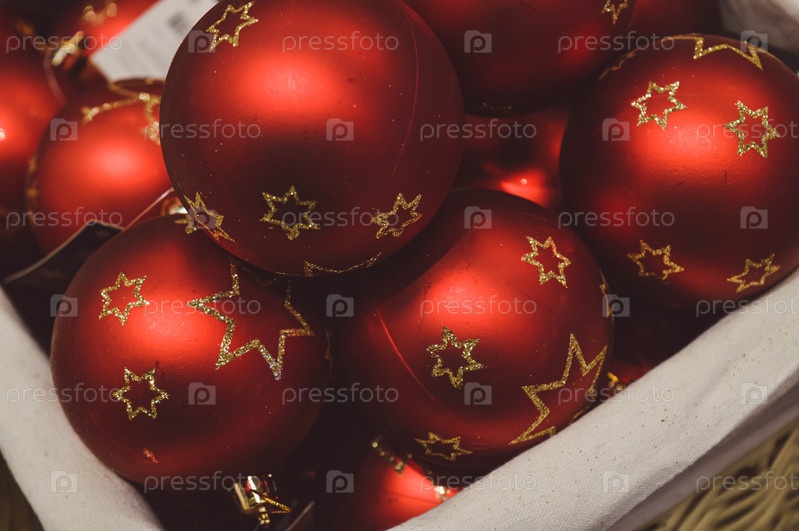 Фотографии крупным планом блестящих новогодних елочных шаров в куче