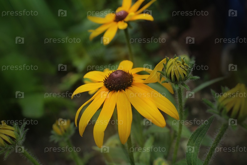 Rudbeckia pilosa желтый цветок с коричневым сердцем в крупном плане. летние цветки на клумбе