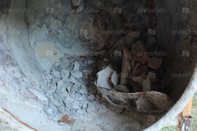 Строительный мусор в строительном ковше-миксере. Концепция проблемы роста строительного мусора. загрязнение окружающей среды