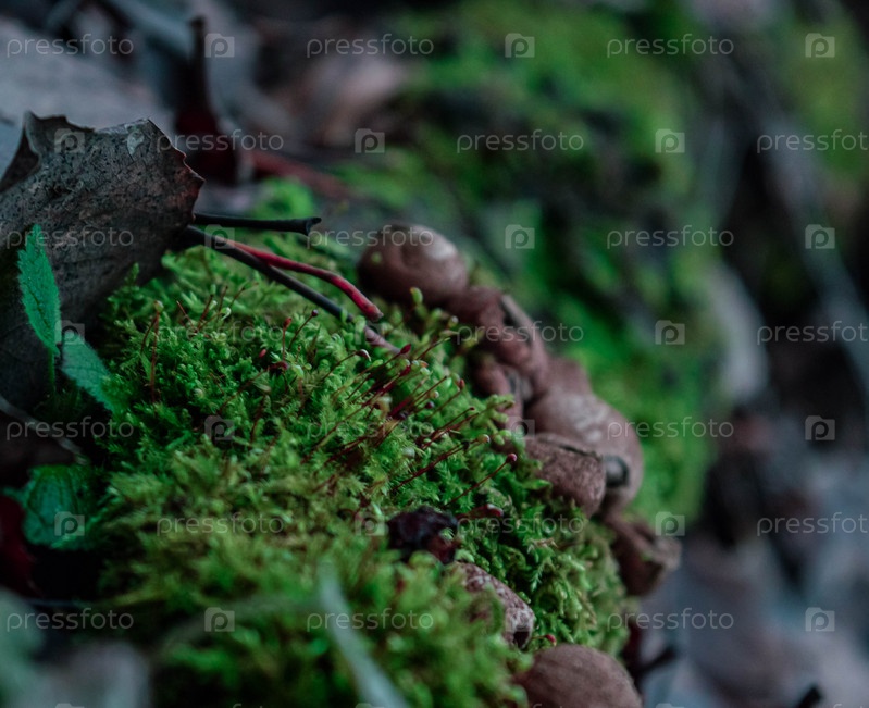 Лес макросъемка лося и грибов в осенний период ноябрь Европа