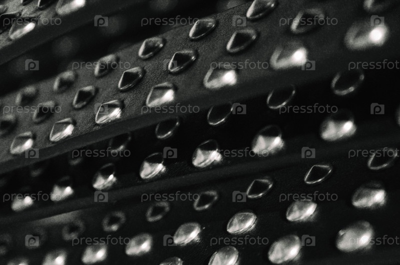 Абстрактный фон из кожи и металла с вкраплениями черной бычьей шкуры и блестящими металлическими заклепками в стиле байкеров и любителей рок-н-ролла 80-х и 90-х годов