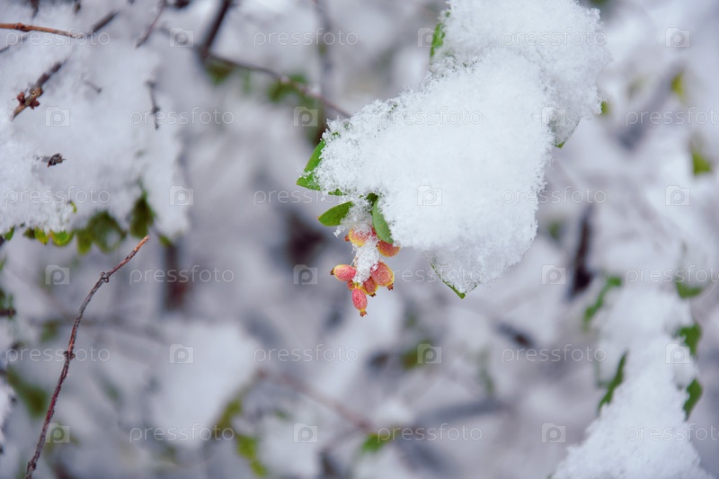 Зима, снег покрывает ягоды. Красивая фотография ягоды под снегом