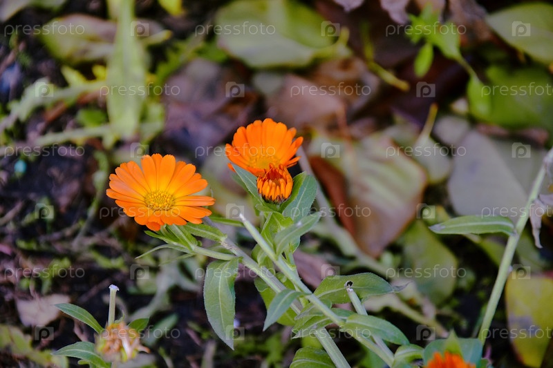 Цветы календула. Ноготок. Оранжевые садовы, уличные, полевые цветы