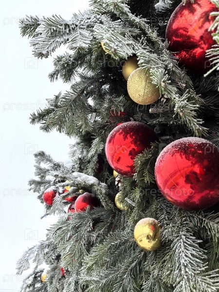Новогодняя елка с игрушками на морозе