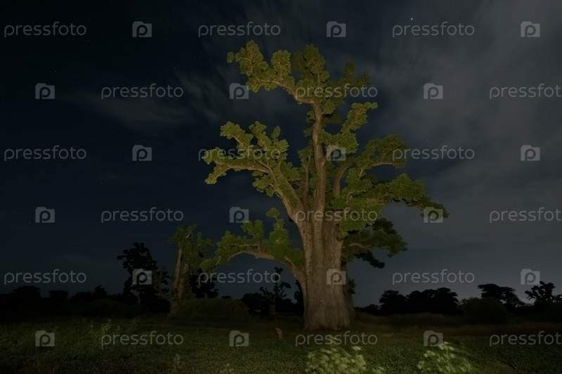 Западная Африка. Сенегал. Лунная ночь над рощей гигантских баобабов в долине реки Ла Симон недалеко от города Нгекхох