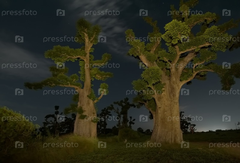 Западная Африка. Сенегал. Лунная ночь над рощей гигантских баобабов в долине реки Ла Симон недалеко от города Нгекхох