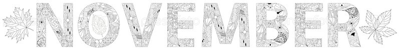 Ручная роспись арт-дизайна для раскрашивания. Иллюстрация слова НОЯБРЬ для дизайна футболки, татуировки и других украшений
