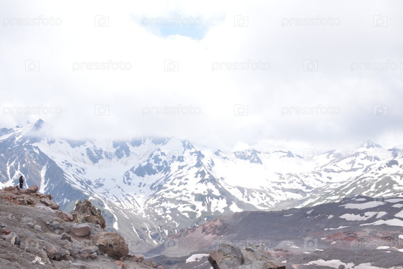 Вид на горы Большого (Главного) Кавказского хребта с горы Эльбрус