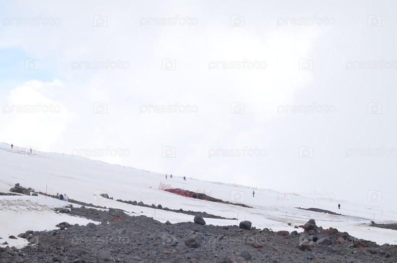 Горнолыжники и сноубордисты на горе Эльбрус: зимние виды спорта в августе