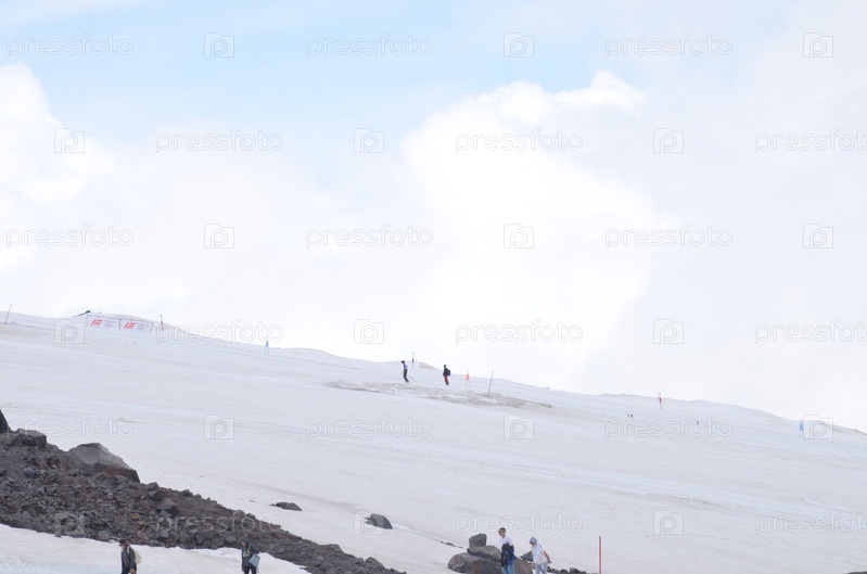 Горнолыжники и сноубордисты на горе Эльбрус: зимние виды спорта в августе