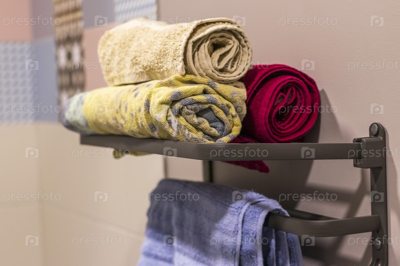 Снимок полотенец на полотенцедержателе. Домашнее хозяйство