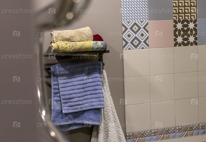 Снимок полотенец на полотенцедержателе. Домашнее хозяйство