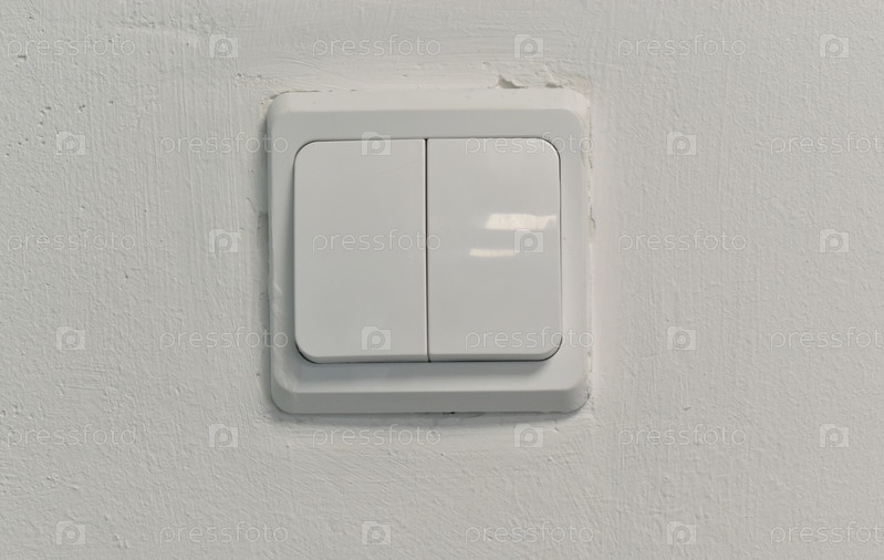 На стене есть электрический выключатель. Белая стена с выключателем