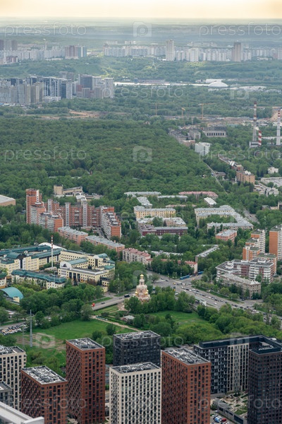 Вид со смотровой площадки Москва-Сити на церковь Покрова Пресвятой Богородицы