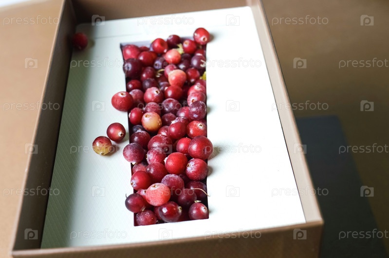 Красная клюква ягода в коробке упакованная для продажи замороженная и свежая ягода