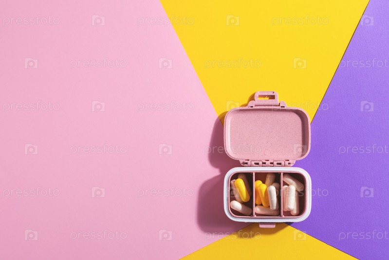 Органайзер для таблеток на разноцветном фоне