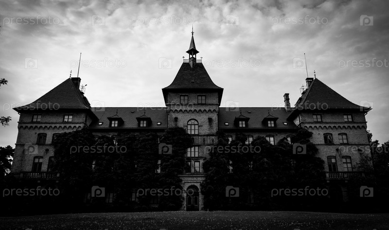 Черно-белое фото замка Альнарп, Швеция