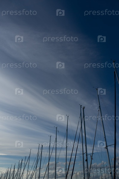 Мачты яхт на фоне перьевых облаков