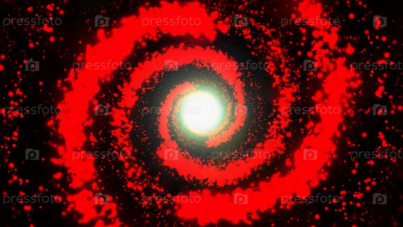 Галактика красная, вращающаяся по часовой стрелке, яркие круглые частицы