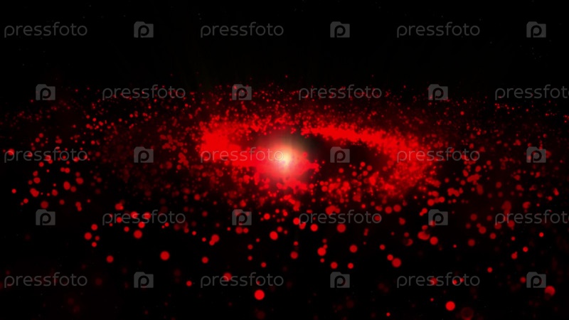 Галактика красная, вращающаяся по часовой стрелке, яркие круглые частицы