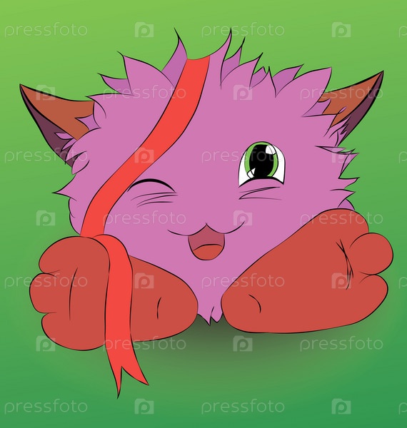 Милый мультяшный монстр и красная лента