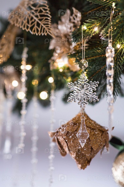 Баннер или красивый фон. Стильные елочные игрушки в интерьере дома. Зеленые тона. Концепция стильного нового года и Рождества 2025
