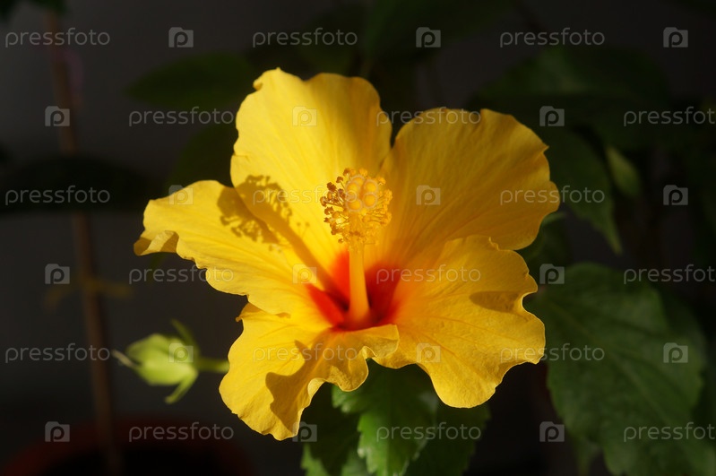 Цветение желтого гибискуса
