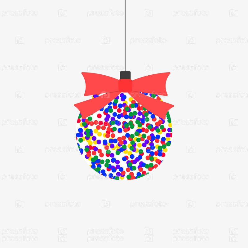 Елочная игрушка с разноцветными конфетти в плоском стиле
